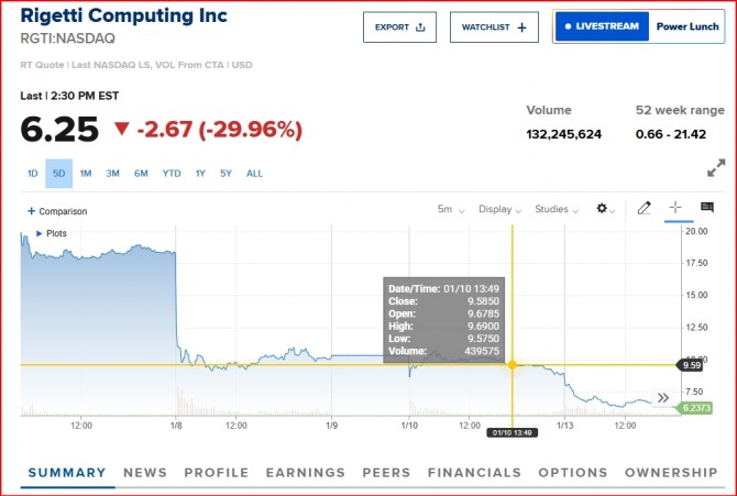 이미지 확대보기메타플랫폼스 공동창업자 겸 최고경영자(CEO) 마크 저커버그가 13일(현지시간) 양자컴퓨터 종목들을 ‘확인 사살’했다. 지난 8일 젠슨 황 엔비디아 CEO가 양자컴퓨터는 15~30년 뒤, 아마도 20년 뒤에나 실용화가 가능할 것이라고 전망해 양자컴퓨터 종목 폭락세를 촉발한 데 이어 13일에는 저커버그가 수년 뒤에야 가능한 일이라고 말했다. 지난해 폭등세를 탔던 양자컴퓨터 종목들은 이날 미국 국채 수익률 상승 부담에 더해 저커버그의 우울한 전망까지 나오면서 다시 폭락했다.