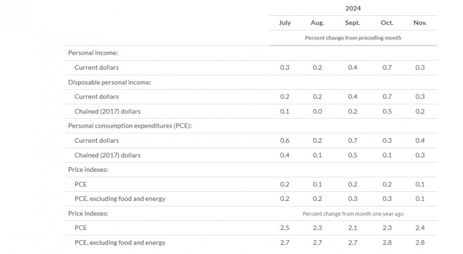 31일 미국 상무부 발표에 따르면 12월 헤드라인 PCE 물가지수는 전월 대비 0.3%, 전년 대비 2.6% 상승한 것으로 나타났다. 연준이 가장 중시하는 지표로, 변동성이 심한 에너지 및 식품 가격을 제외한 근원 PCE는 전월 대비 0.2% 상승할 것으로 예상된다. 직전 달은 0.1%였다. 전년 대비로는 2.8% 상승한 것으로 나타났다. 그 직전 달은 2.7%였다.미 상무부는 지난해 12월 개인소비지출(PCE) 가격지수가 전년 동월 대비 2.6% 상승했다고 밝혔다. 전월 대비 상승률은 0.3%이었다.에너지와 식료품을 제외한 근원 PCE 가격지수 상승률은 전년 동월 대비 2.8%, 전월 대비 0.2%였다.