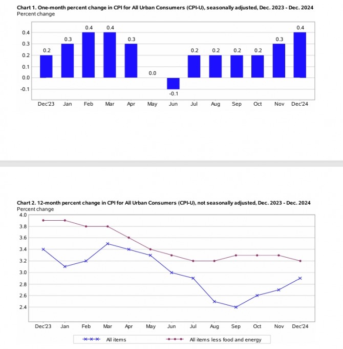 이번 통계는 트럼프가 관세 폭탄을 본격적으로 투하하기 전의 통계이기 때문이다. 관세 폭탄의 효과가 어느 정도 인지는 2월 CPI를 봐야 알 수 있을 전망이다. 물론 1월 CPI도 그 자체로도 중요하다. 통계가 시장의 예상을 상회할 경우,인플레이션 진전이 멈췄다는 실망감에 미국 증시가 급락할 수 있다. 인플레이션이 진전을 멈출 경우, 금리 인하 가능성이 더욱 낮아져 미증시에 하방 압력을 가할 수밖에 없다. 미국 노동통계국은 이날 CPI를 발표한 뒤 13일에는 생산자물가지수(PPI)를 발표한다.
