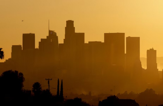 2024년 9월 5일, 미국 캘리포니아주 로스앤젤레스의 높은 기온에 태양이 도시 경관을 뒤덮고 있다. 로이터