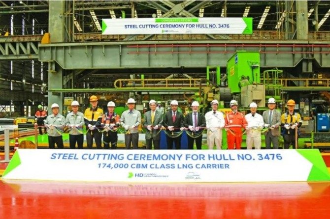 이미지 확대보기외신에 따르면 HD현대중공업은 지난 26일 울산 조선소에서 나킬라트 고위 관계자와 해양 부문 주요 인사들이 참석한 가운데 LNG운반선 17척의 건조 시작을 알리는 강재 절단식을 열었다고 밝혔다. 이번 행사는 LNG 해상 운송 분야에서 세계를 이끄는 선도기업인 나킬라트에도 중요한 이정표로 여겨진다.