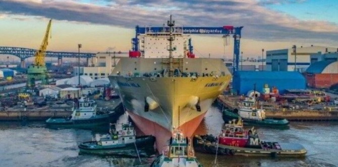 이런 상황에도 한국 한화그룹은 지난해 말 셸 잉게 뢰케(Kjell Inge Rokke)가 지원하는 회사로부터 필리조선소(Philly Shipyard)를 인수한 뒤 이를 고칠 계획이다. 한화는 약 1000억 원(약 7200만 달러)을 들여 필리조선소의 한 해 생산 능력을 기존 1.5척에서 10척으로 늘리고, 2035년까지 한 해 매출 40억 달러(약 5조5080억 원)를 목표로 삼고 있다. 현재 필리조선소는 상선 훈련선, 존스법(Jones Act)을 지키는 컨테이너선, 해저 암반 설치선 건조 계약을 맺고 있으며, 이전 소유주는 이 중 상당수를 손실 프로젝트로 분류한 바 있다.