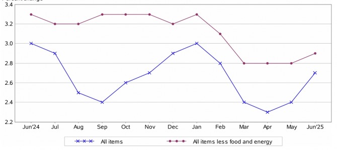 미국 노동부는 7월 미국 CPI가 지난해 같은 달에 비해 2.7% 상승했다고 12일(이하 현지시각) 밝혔다. 전달에 비해서는 0.2% 상승했다.