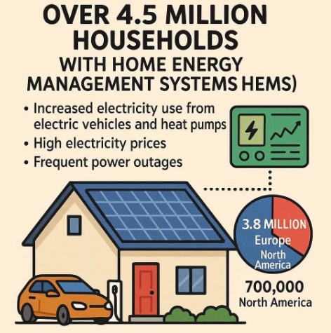 보고서에 따르면 지난해 말 유럽의 HEMS 설치 가구는 380만 곳으로, 1년 동안 120만 대가 추가됐다. 전체 가구 기준 보급률은 3.2%로 아직 낮지만, 매년 22% 넘게 늘어나 2029년에는 1060만 대에 이를 것으로 예상했다. 이는 유럽 전체 가구의 8%를 웃도는 수준이다.