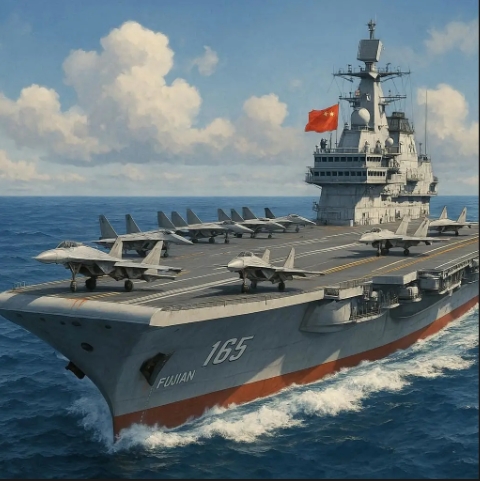 세 번째 항모인 푸젠함은 상하이의 장난조선소에서 건조됐다. 미국의 제럴드 포드급보다 크기는 작지만, 미 해군 항모와 유사한 캐터펄트 사출 시스템을 탑재했다. 캐터펄트는 고압의 증기나 전자기력을 이용해 전투기를 강제로 밀어내 가속시키는 장치로, 무거운 전투기도 짧은 거리에서 충분한 속도를 얻어 이륙할 수 있게 해준다. 스키점프 방식보다 더 많은 무장과 연료를 실을 수 있다.