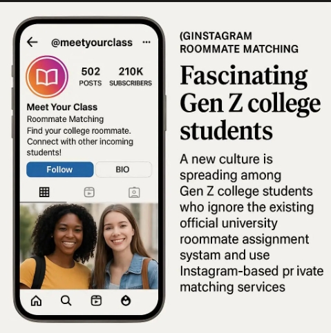 메릴랜드 대학 거주 생활 책임자 데니스 파사렐라-조지(Dennis Passarella-George)는 "신입생 약 3분의 1이 학교 플랫폼, 입학생의 날 회의, 점점 더 많은 인스타그램 등 여러 출처에서 룸메이트를 요청한다"고 말했다. 그는 "인스타그램은 첫 번째 만남에 좋을 수 있지만 분위기가 진짜인지, 우리가 잘 어울릴 수 있을지 알아내려면 조금 더 깊이 파고들어야 한다"고 덧붙였다.