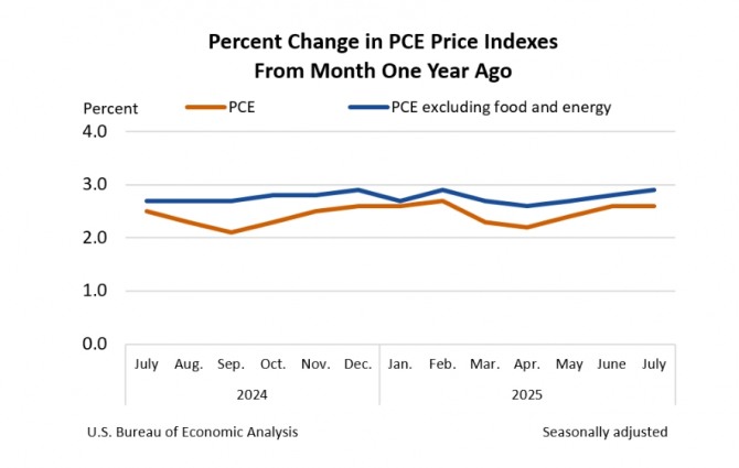 미국 상무부 경제분석국(BEA)은 9월 26일(한국시간) 2025년 8월 개인소비지출(PCE) 물가지수를 발표했다. 이번 PCE는 전년 동기 대비 2.7% 상승했으며, 변동성이 큰 에너지와 식품을 제외한 근원 PCE는 2.9% 올랐다. 미 상무부는 8월 개인소비지출(PCE) 가격지수가 전년 동월 대비 2.7% 상승했다고 26일(현지시간) 밝혔다.