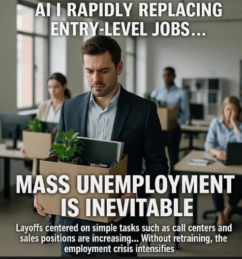 업계 분석에 따르면 AI에 노출된 분야에서 초급 일자리는 13~20% 줄어들었고, 5년 내 초급 화이트칼라 일자리의 50%가 사라질 수 있다는 전망도 나온다. 2026년까지 기업 40%가 사람을 대체할 AI 도구를 도입할 계획이라는 조사 결과도 있다.