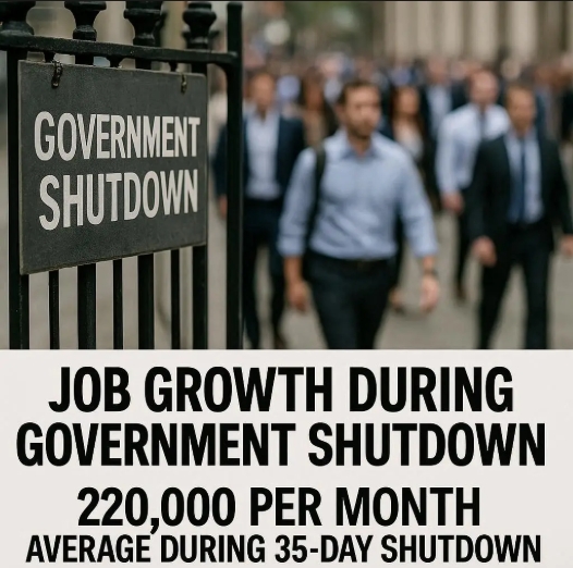 가장 최근 정부 폐쇄는 2018년 12월부터 2019년 1월 중순까지 35일간 이어졌다. 이 기간 미국의 월평균 임금 고용은 22만 1000개 늘었다. 2019년 한 해 월평균 일자리 증가 수인 16만 6000개보다 많은 수치다.
