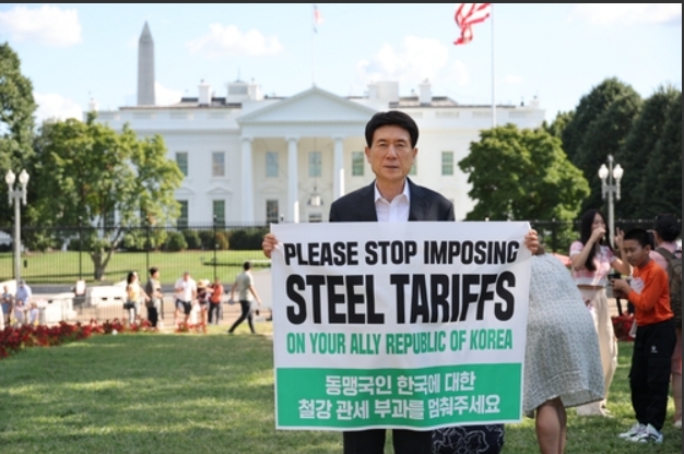WSJ에 따르면 그는 약 한 달 전 지구 반대편까지 날아가 백악관 앞에서 직접 시위를 벌였다. 이 시장은 시청 직원 및 관계자들과 함께 "동맹국 대한민국은 왜 철강 관세를 받아야 하느냐"는 취지를 담은 대문자 영문 현수막을 들었다.