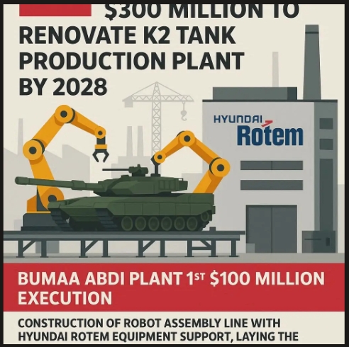 부마아 애브 디 공장 1차 1억 달러 집행, 현대로템 장비 지원으로 로봇 조립라인 구축·연간 180대 전차·81대 지원 차량 현지생산 기반 마련