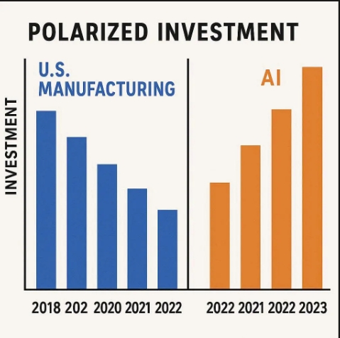 브루킹스연구소 마크 무로 선임연구원은 "소프트웨어와 서비스 분야가 빠르게 성장하며 문화 전체가 여기에 집중하는 동안, 제조업은 제자리걸음을 하거나 더 나빠지고 있다"며 "AI 붐이 경제의 다른 부문들이 제대로 작동하지 않는 것을 가리고 있다"고 밝혔다.
