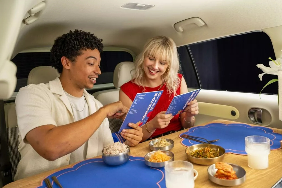 'Backseat Bites'는 일러스트레이터 Yoy Han의 맞춤형 한국 거리 예술과 Chung'Dam의 요리 전문가가 큐레이션한 메뉴로 분위기를 더한다. 특히 '혼자 식사하다'를 의미하는 한국의 문화 현상인 '혼밥'에서 영감을 받은 '드라이브 앤 다이닝' 컨셉은 개인적인 탈출에 대한 욕구가 높아지는 가운데 시작되었다.