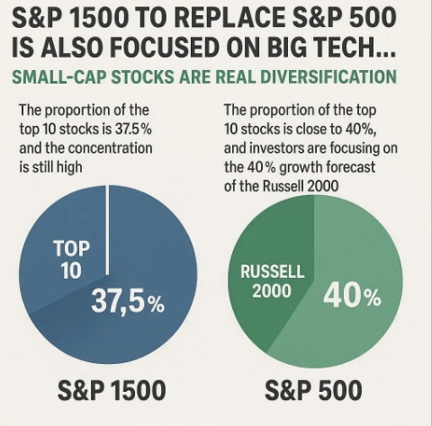 데이터트렉 공동창업자 니콜라스 콜라스는 "S&P 1500이 더 보수적인 투자로 느껴질 수 있지만, 중요한 측면에서 S&P 500과 차이는 미미하다"며 "이는 주로 미국 주식시장의 높은 집중도 때문이며, 앞으로 몇 년간 변화하지 않을 것"이라고 분석했다.