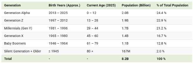 두 세대를 합치면 인류의 47%에 달한다. 이같은 구조 변화는 교육·노동시장·소비 패턴 등 사회 전반에 근본적인 영향을 미칠 것으로 전망됐다.