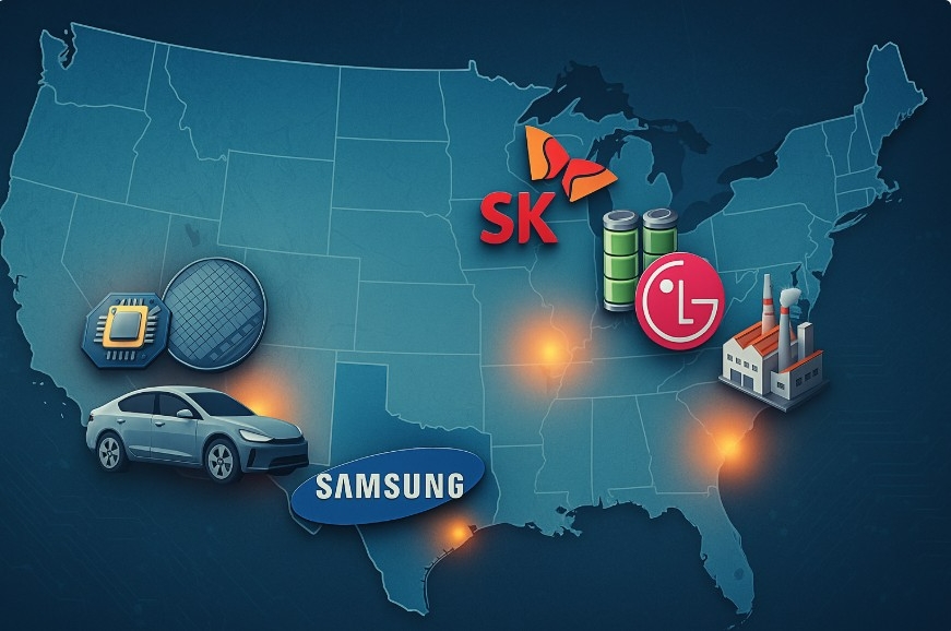 이러한 확장은 미국 내 전기차(EV) 및 인공지능(AI) 시장의 폭발적인 성장이 견인했다. SK그룹의 투자 급증은 주로 SK온의 배터리 합작법인(JV) 및 조지아주 공장에서 비롯되었으며, 삼성의 자산 증가는 주로 텍사스 오스틴 반도체 공장 및 테일러 신규 팹, 신규 배터리 사업 덕분이다. LG그룹은 LG에너지솔루션과 LG전자의 미국 생산시설을, 현대차그룹은 조지아주 애틀랜타 인근의 전기차 전용 공장과 미국 내 조립라인을 중심으로 자산을 확대했다. 미국 시장 내 AI 반도체 수요 급증에 따른 설비 투자 확대 역시 주요 동력이다.