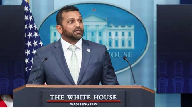 11월 12일 워싱턴 백악관에서 열린 언론 브리핑에서 캐시 파텔 FBI 국장이 연설하고 있다. 사진=로이터