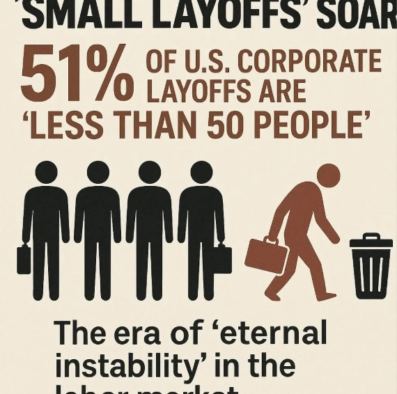 미국 직장 리뷰 사이트 글래스도어(Glassdoor)가 공개한 2015년부터 2025년 9월까지의 정리 해고 규모별 점유율 분석 자료는 정리 해고 상황의 극적인 변화를 명확하게 보여준다. 이 분석은 직원 100명 이상 기업에서 발생한 정리 해고 통지(WARN Act notices)를 바탕으로 한다.