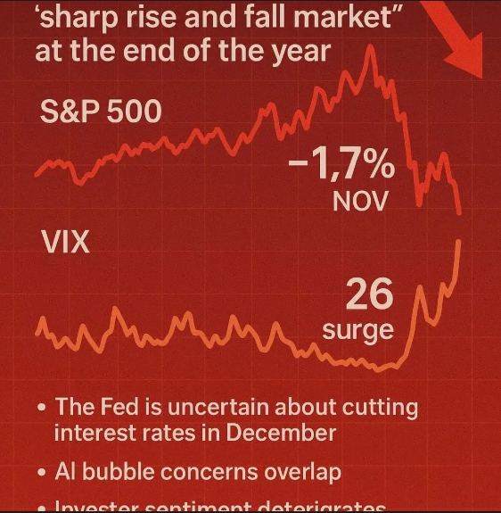 시카고옵션거래소(CBOE) 변동성지수(VIX)는 11월 들어 50% 급등해 26을 기록했는데, 이는 지난 4월 이후 최고 수준이다. S&P500지수는 이미 50일 이동평균선을 하향 돌파했고, 14일 최저치인 6521.92는 도널드 트럼프 대통령이 추가 관세를 위협했던 지난 10월 10일 저점 6552.51 바로 아래다.