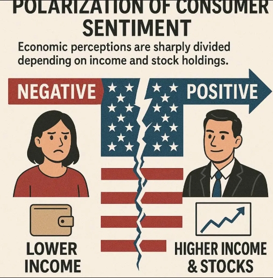 고소득층이 저소득층보다 경제를 긍정적으로 보는 것은 놀라운 일이 아니다. 부유한 가구는 휘발유나 식료품 같은 필수품에 소득의 적은 비율을 지출하기 때문에 물가 상승 시 더 큰 완충 여력을 갖고 있다.
