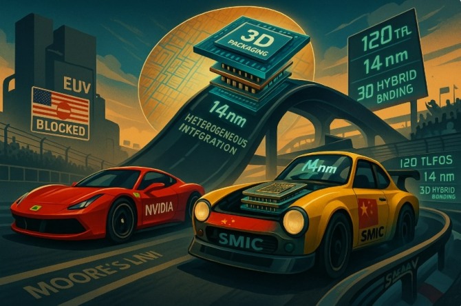 중국 반도체 업계가 전 세계 AI(인공지능) 칩 시장의 절대강자 엔비디아(NVIDIA)를 향해 기상천외한 도전장을 던졌다. 최첨단 4나노, 3나노 공정이 아닌, 사실상 '구형(Legacy)' 기술로 취급받는 14나노 공정으로 엔비디아의 최신 GPU(그래픽처리장치) 성능을 따라잡았다는 주장이다. 이는 반도체 업계의 불문율인 '무어의 법칙(미세 공정이 성능을 좌우한다)'을 정면으로 거스르는 시도이자, 미국의 EUV(극자외선) 장비 통제를 보란 듯이 비웃는 '기술적 도발'이다.