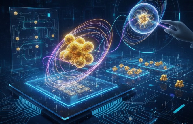 이미지 확대보기3일(현지 시각) 과학 전문매체 사이테크데일리에 따르면 미국 펜실베이니아 주립대와 콜로라도 주립대 공동 연구팀은 금 나노클러스터(Gold Nanocluster)가 이러한 기체 상태 원자의 핵심 스핀 특성을 모방할 수 있음을 입증하며, 훨씬 쉬운 확장성을 갖춘 새로운 대안을 제시했다.