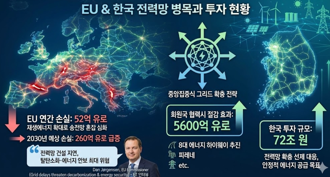 한국도 유사한 전력망 병목을 겪고 있다. 한국전력은 지난 6월 발표한 11차 송변전 설비 계획에서 2038년까지 72조8000억 원을 투자한다고 밝혔다.