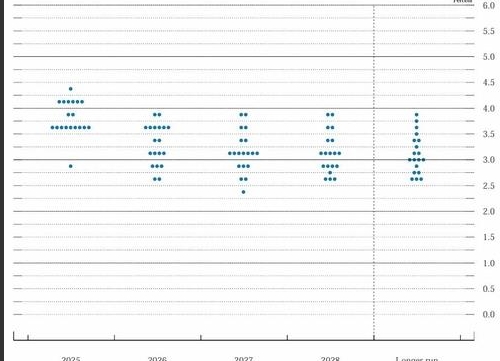 위원별 점수는 비공개이며, 점의 분포와 이동 방향이 시장 해석의 핵심이다. 연준 내 의견이 분화되어, 고용 리스크에 대한 대응이 강조된 점이 특징이다. 점도표는 연준의 미래 금리 정책 방향과 내부 시각을 가늠하는 핵심 지표로, 시장 변동성에 큰 영향을 미친다. 점도표는 미국 연방준비제도 이사회(FED)가 매 분기 발표하는 도표이다. 점도표는 FED 18명의 위원들이 FOMC 회의에 들어가기 전에 각자 생각하는 금리 인상 시기와 인상 폭을 취합한 것으로 향후 FED의 금리 조정을 예측할 수 있는 중요한 지표로 평가받고 있다.