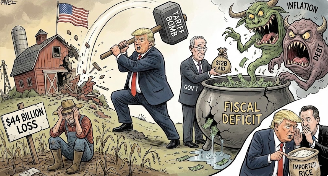 워싱턴포스트(WP)는 지난 8일(현지시간) 트럼프 대통령이 백악관에서 농업계 인사들을 만나 지원 패키지를 발표했다고 보도하며, 이번 사태를 "보호무역주의가 빚어낸 참사이자 아부와 지대추구(rent-seeking)로 얼룩진 정책 난맥상"이라고 강도 높게 비판했다.