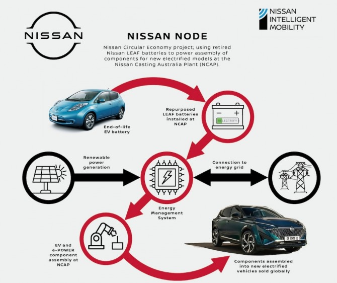 닛산 오스트레일리아는 오래된 리프 배터리의 현지 재사용을 위해 멜버른에 기반을 둔 더 노드 프로젝트(The Node Project)와 협력했다.