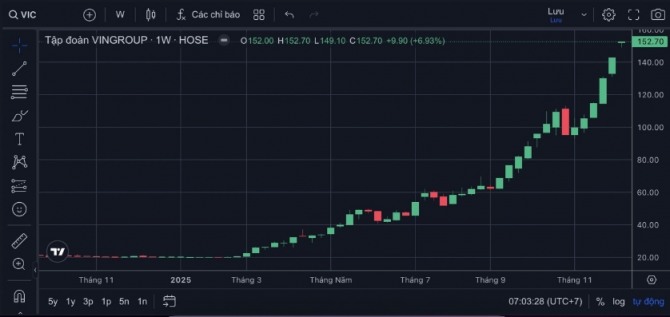 VIC는 올해 초 이후 700% 상승하며 VN30에서 가장 크게 상승한 주식이며 전체 시장의 선두 그룹 중 하나로 자리매김했다.