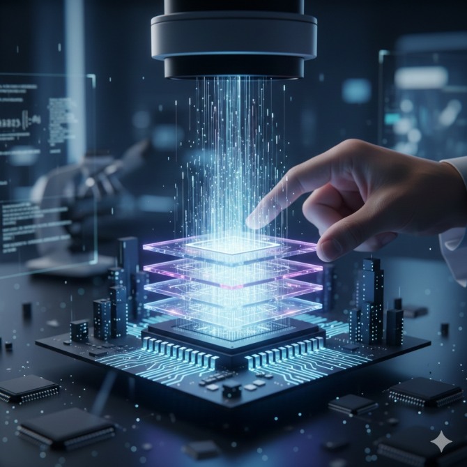기존 2D 칩이 평면 위에서 데이터를 길고 혼잡한 경로로 이동시켰다면, 새로운 3D 칩은 '수직 배선'을 고속 엘리베이터처럼 활용한다. 이를 통해 연산 요소가 데이터를 기다리느라 속도가 저하되는 이른바 '메모리 벽(Memory Wall)' 현상을 근본적으로 차단했다.
