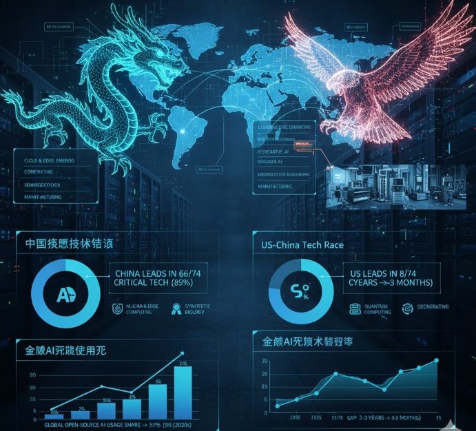 최근 발표된 자료에 따르면, 중국의 AI 기업들은 챗GPT 충격 이후 3년 만에 미국과의 기술 격차를 약 3개월로 좁혔으며, DeepSeek의 V3/R1 모델과 알리바바 클라우드의 Qwen 모델 등이 오픈소스 분야에서 글로벌 기술 사용의 약 30%를 차지하고 있다.