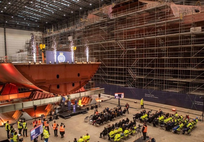 로지스 조선소서 'HMS 포미더블' 용골 거치…타입31 3번함 건조 본격화