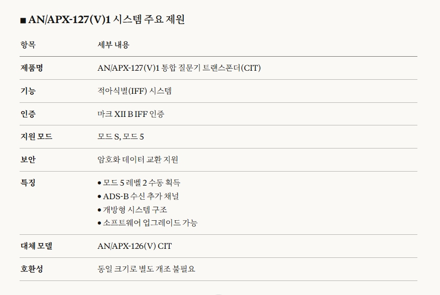 AN/APX-127 적아식별장치로 아군·적군 판별 능력 대폭 강화