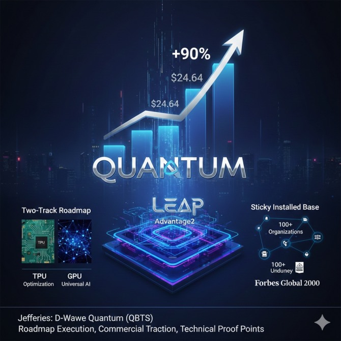 디웨이브는 양자컴퓨팅 상업적 도입에서 먼저 움직인 덕에 선점자 우위를 구축했다고 제프리스는 평가했다.
