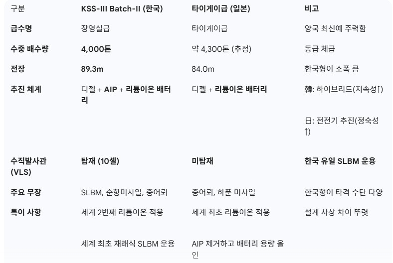 제원상으로도 Batch-II는 수상 배수량 3600톤, 수중 배수량 4000톤에 전장 89.3m로, Batch-I(수상 3358톤/수중 3750톤, 전장 83.5m)보다 덩치를 키웠다. 이러한 고용량 배터리와 AIP 시스템의 결합으로 KSS-III는 20일 이상의 수중 잠항과 최대 50일간의 작전 지속 능력을 확보, 일부 원자력 추진 잠수함에 버금가는 작전 유연성을 갖춘 것으로 평가된다.