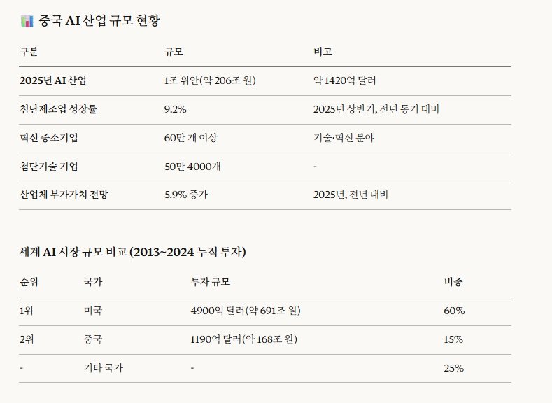 중국 당국에 따르면 올해 AI 산업 규모는 1조 위안(약 1420억 달러)을 넘어설 전망이다. 이는 중국의 기술 전환과 혁신 가속화 속에서 AI 분야가 급속히 확장하고 있음을 보여준다.