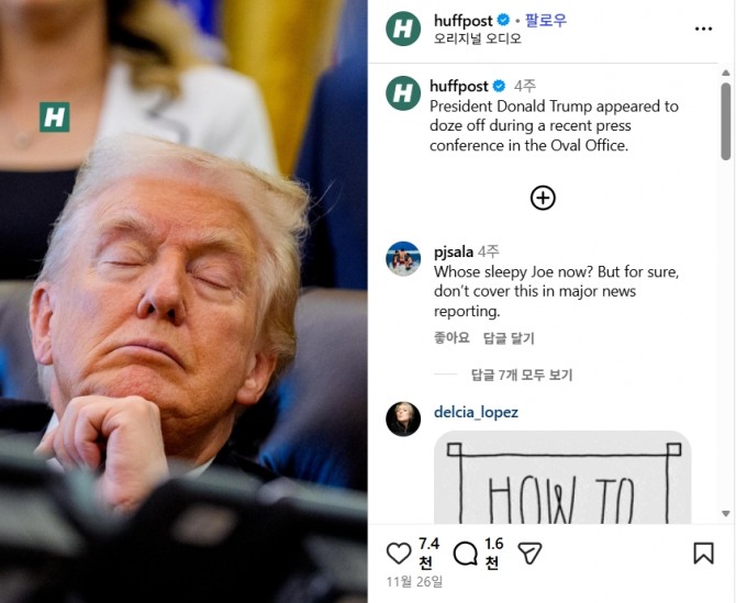 뉴리퍼블릭 보도에 따르면 트럼프 대통령은 집권 2기 취임 이후 대중 앞에서 약 12차례나 잠든 모습이 포착됐다. 특히 지난 2일 열린 내각 회의에서는 몇 분 동안 눈을 감고 있는 모습이 목격됐다. 이달 초 르완다와 콩고민주공화국 간 평화 협정 서명식이라는 역사적인 자리에서도 졸음을 참지 못하는 모습을 보여 빈축을 샀다.