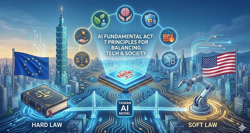 이미지 확대보기대만 행정원은 지난 28일 AI 산업 진흥과 규제를 동시에 포괄하는 ‘AI 기본법’을 제정했다고 발표했다. 이는 유럽연합(EU)의 강력한 법적 규제(Hard Law)와 미국의 자율 중심 모델(Soft Law) 사이에서 절충점을 찾은 ‘대만식 해법’으로 평가받는다.