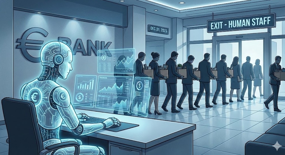 유럽 은행권의 대규모 감원 예고는 남의 나라 이야기가 아니다. 우리 금융권 역시 '디지털 전환'이라는 명분 아래 AI 도입과 점포 통폐합 속도전이 한창이다.