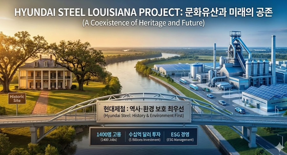 이미지 확대보기현대제철은 미국 루이지애나주에서 추진 중인 대규모 제철소 건립 사업과 관련해, 지역사회가 제기한 역사적 유산 보존 우려를 불식하고자 ‘선(先) 보호 검증, 후(後) 착공’이라는 강력한 원칙을 천명했다.