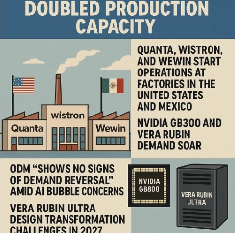 퀀타, 위스트론, 위윈 등 대만 ODM 업체들은 2027년까지 주문 가시성이 확보됐다고 밝혔다. 고객사 수요가 명확해지면서 각 업체는 공격적인 생산능력 증설에 나섰다. 지정학적 상황을 고려해 미국 내 공장 건설이 두드러진 흐름으로 자리 잡았다. 이미 미국 공장을 운영 중인 퀀타와 폭스콘에 이어, 위스트론·위윈·인벤텍도 2026년 미국 공장을 가동할 예정이다.