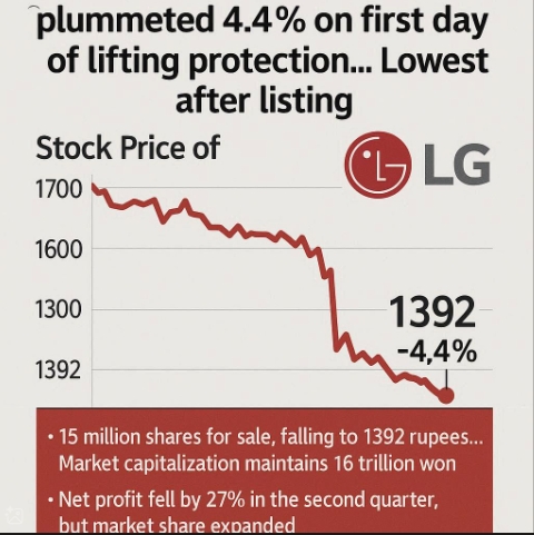 이미지 확대보기보도에 따르면 이번 하락은 상장 3개월 만에 보호예수 기간이 끝나면서 발생했다. 보호예수는 상장 직후 일정 기간 특정 주주의 주식 매도를 제한하는 제도다. 인도 투자은행 누바마 인스티튜셔널 이퀴티스에 따르면 보호예수 해제로 약 1500만주가 거래 가능해졌다. 이는 LG전자 인도법인 전체 지분의 2%에 해당한다.