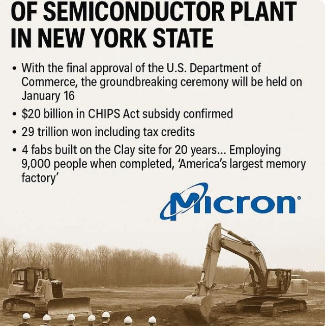 클레이 부지에 4개 팹 20년간 건설…완공시 9000명 고용 '미국 최대 메모리 공장'