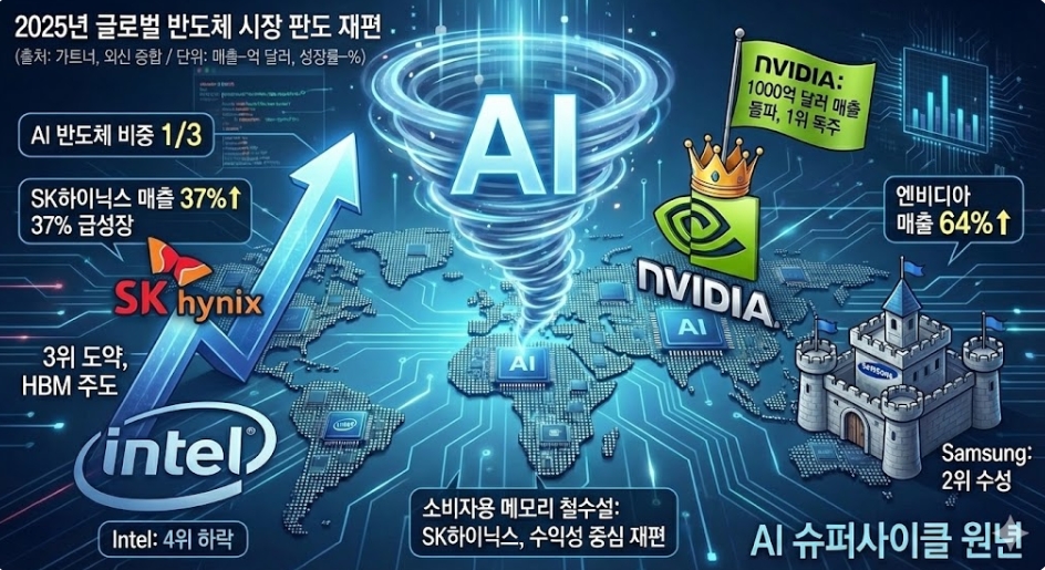 AI가 가른 희비…SK하이닉스 37% 급성장 vs 인텔 4위 추락