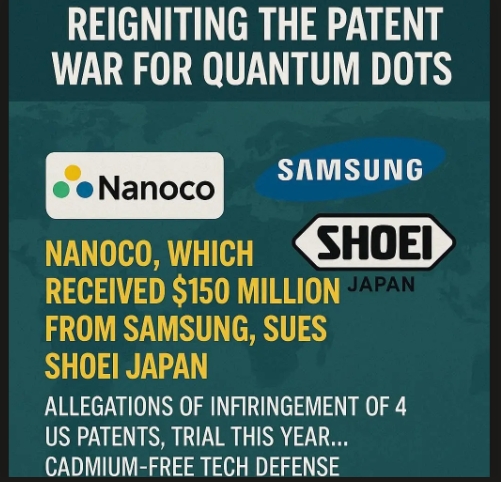 영국 양자점 기업 나노코그룹(Nanoco Group)이 일본 쇼에이 케미컬(Shoei Chemical)을 상대로 미국에서 특허 침해 반소를 제기했다. 삼성전자와 LG전자를 상대로 한 소송에서 잇따라 승소한 경험을 바탕으로 양자점 기술의 지식재산권 방어에 나선 것이다.
