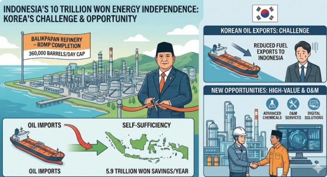 한국 산업계에는 위기와 기회가 동시에 찾아왔다. 우선 정유업계는 수출 전선에 비상이 걸렸다. 인도네시아는 한국의 주요 석유 제품 수출국 중 하나다. 발릭파판 정유소가 본격 가동하면 한국산 휘발유와 경유 수요는 급감할 수밖에 없다.