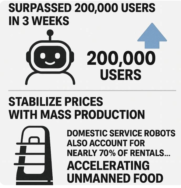봇쉐어가 빠르게 성장한 배경에는 중국 외식·유통업계 마케팅 경쟁이 자리잡고 있다. 보도를 보면, 중국 훠궈 체인 하이디라오(Haidilao)는 봇쉐어 초기 주요 고객으로 참여해 내년 춘절(중국 설) 전까지 일부 매장에 임대 로봇을 투입할 계획이다. 이들 로봇은 서예 쓰기와 댄스 공연, 고객 응대 등을 맡는다.