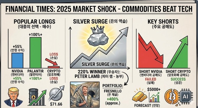 FT 투자 대회 우승자 피터 램은 이러한 흐름을 정확히 꿰뚫었다. 그는 대다수 참가자가 AI 칩 대장주인 엔비디아나 양자 컴퓨팅 테마에 몰두할 때, 프레스니요(Fresnillo)와 같은 은 채굴 기업 주식을 전량 매수하는 '올인' 전략을 폈다.